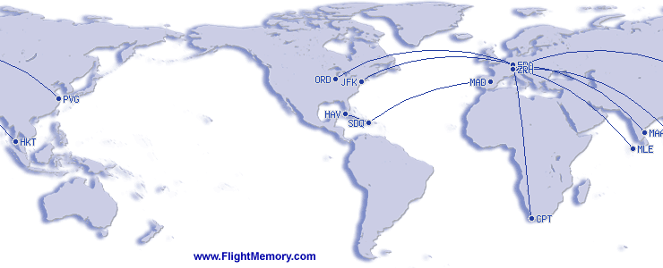 | Shortest Flight: | 1,419 km, 1:55 h, Havanna (Jose Marti Aeropuerto Int.) - Santo Domingo (Las Americas Int.), 22.03.2026 |