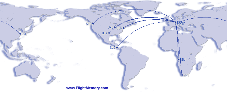 | Shortest Flight: | 6,195 km, 7:23 h, New York (John F. Kennedy) - Frankfurt (Rhein-Main), 30.03.2026 |