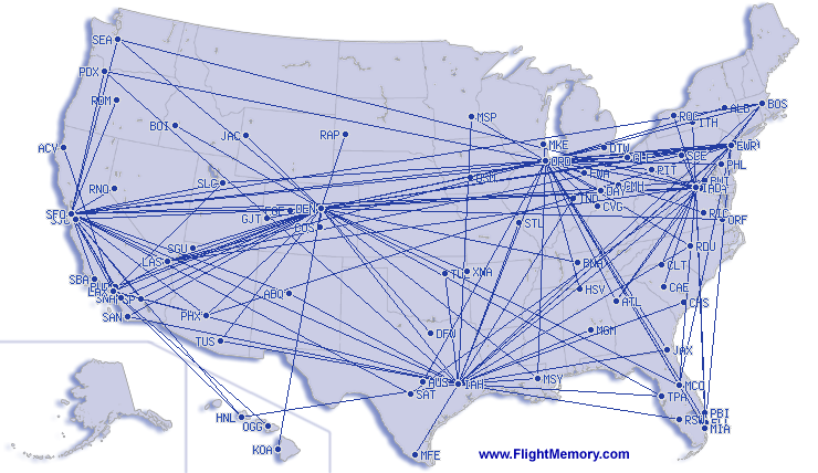 | Vol le plus court: | 117 km, 0:56 h, Denver (International) - Colorado Springs (Municipal), 21.04.2026 |