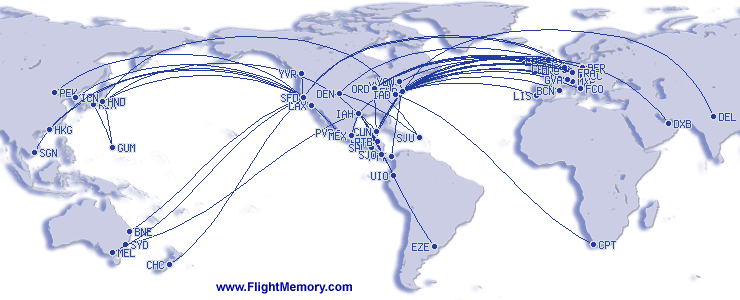 | Vol le plus long (en distance): | 13,850 km, 15:35 h, Sydney (Kingsford Smith) - Houston (George Bush Intercontinental), 19.12.2025 |