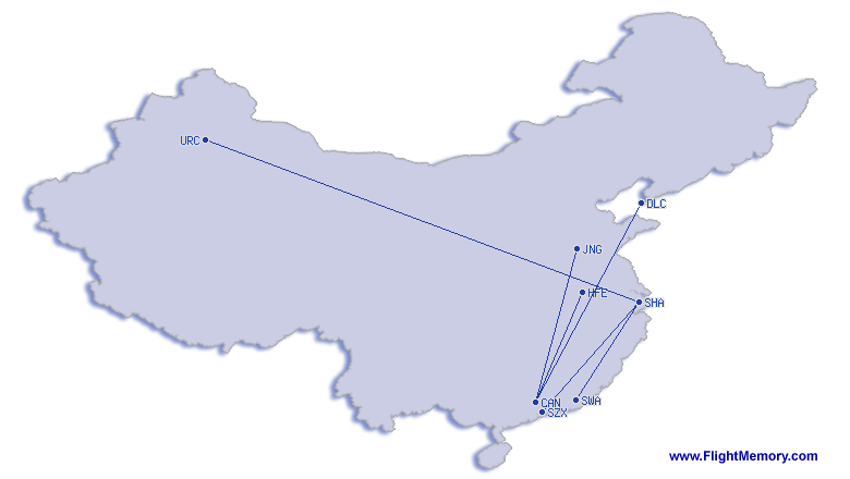 | Volo più breve: | 978 km, 1:47 h, Shanghai (Hongqiao) - Jieyang (Chaoshan International), 28.02.2026 |