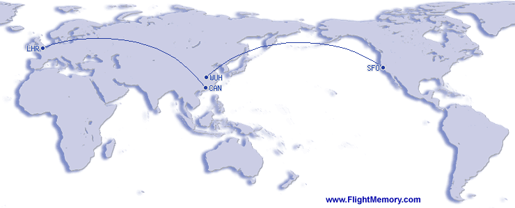 | Volo più lungo (distanza): | 10,416 km, 12:04 h, Wuhan (Tianhe International) - San Francisco (International), 26.02.2026 |