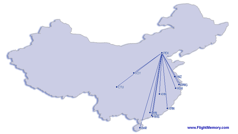 Korteste flygning: 806 km, 1:25 h, Beijing (Capital) - Yancheng (Nanyang), 30.11.2025