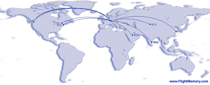 | Længste flyetid: | 10:16 h, 5,460 mi, Shanghai (Pudong) - München (Franz Josef Strauß), 04-05-2026 |