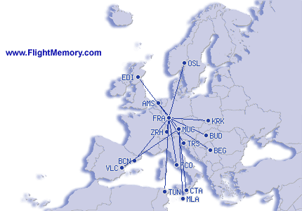 | Vuelo más corto: | 119 mi, 0:45 h, Nürnberg (Albrecht Dürer) - Frankfurt (Rhein-Main), 03-06-2026 |