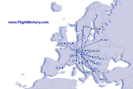 | Vuelo más corto: | 119 mi, 0:43 h, Nürnberg (Albrecht Dürer) - Frankfurt (Rhein-Main), 04-18-2026 |