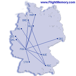 | Vuelo más corto: | 94 mi, 0:40 h, Frankfurt (Rhein-Main) - Köln (Hauptbahnhof), 01-07-2026 |