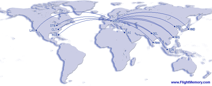| 最大距離を持つフライト: | 6,395 mi, 12:15 h, Frankfurt (Rhein-Main) - Singapore (Changi), 03-19-2026 |