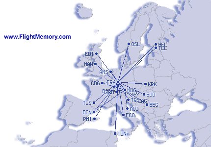 | Najkraci let: | 117 mi, 0:45 h, Düsseldorf (International) - Frankfurt (Rhein-Main), 03-06-2026 |