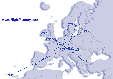 | Penerbangan Paling Lama: | 12:20 h, 5,942 mi, Frankfurt (Rhein-Main) - Mexiko City (Internacional Benito Juárez), 01-17-2026 |