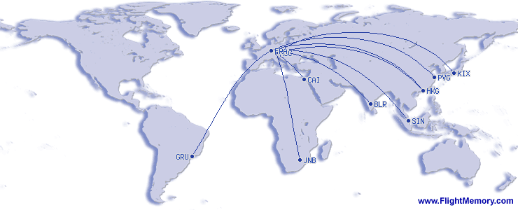 | Verste vlucht: | 6,395 mi, 12:56 h, Singapur (Changi) - Frankfurt (Rhein-Main), 03-17-2026 |