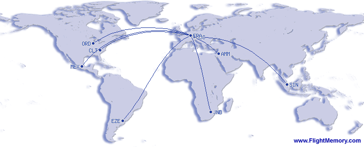 | Najduzi let (trajanje-vremenski): | 13:50 h, 7,154 mi, Frankfurt (Rhein-Main) - Buenos Aires (Ezeiza - Ministro Pistarini), 03-07-2026 |