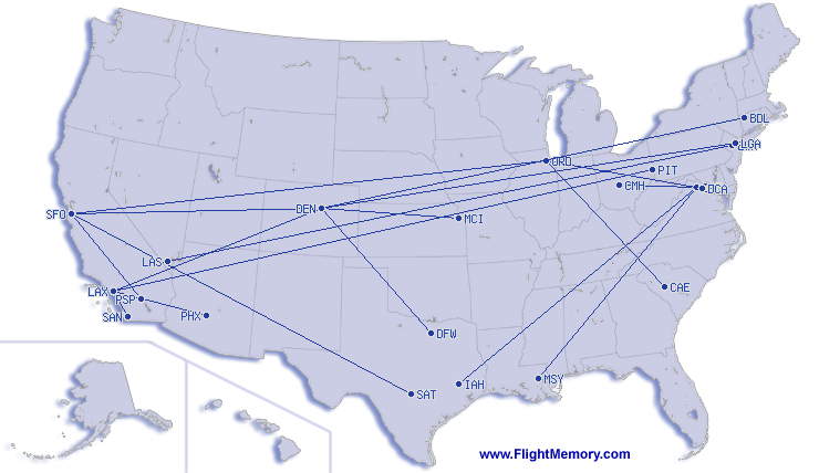| Vol le plus court: | 109 mi, 0:42 h, Los Angeles (International) - San Diego (Lindbergh Field), 04-09-2026 |
