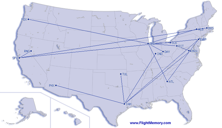 | Penerbangan terpendek: | 122 mi, 0:41 h, Chicago (O'Hare) - Kalamazoo (Battle Creek International), 04-19-2026 |