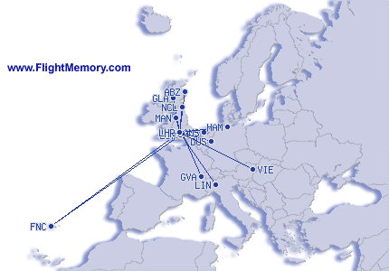 | cel mai scurt zbor: | 150 mi, 1:10 h, Manchester (Ringway International) - London (Heathrow), 01-25-2026 |