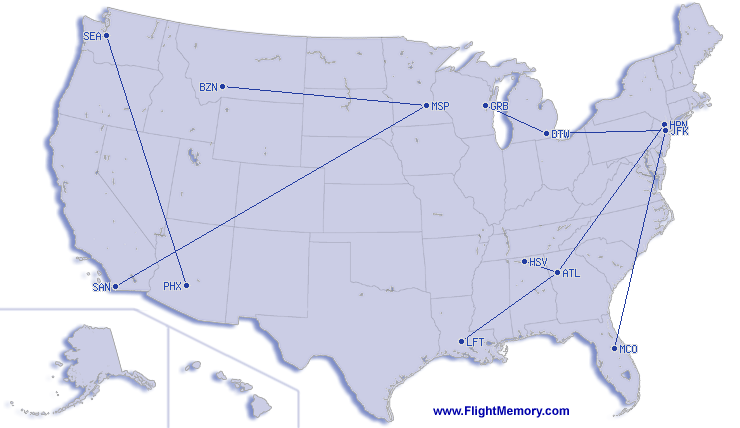 | Shortest Flight: | 151 mi, 0:57 h, Atlanta (Hartsfield - Jackson Int.) - Huntsville (Carl T. Jones Field), 01-04-2026 |