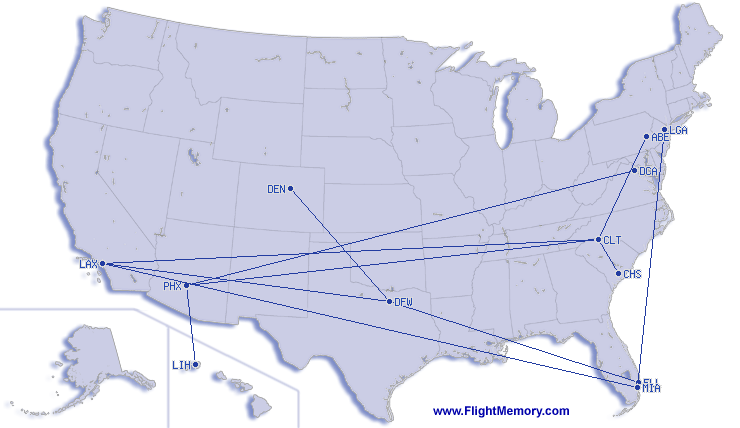 | 所搭乘过最短距离及时间的航线: | 168 mi, 1:22 h, Charleston (International) - Charlotte (Charlotte/Douglas International), 12-30-2025 |