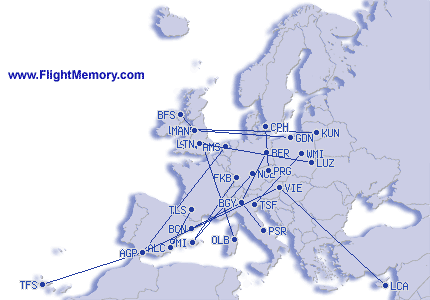 | Vol le plus long (en temps): | 3:25 h, 1,328 mi, Wien (Schwechat) - Malaga (Pablo Ruiz Picasso), 04-04-2026 |