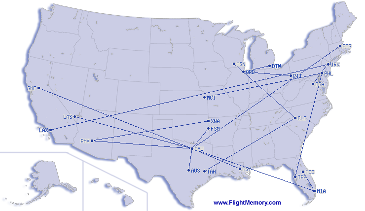 | Najkrótszy lot: | 193 mi, 1:21 h, Miami (International) - Orlando (International), 03-02-2026 |