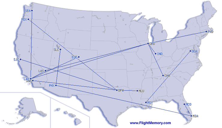 | Najkrótszy lot: | 178 mi, 1:22 h, Indianapolis (International) - Chicago (O'Hare), 03-05-2026 |