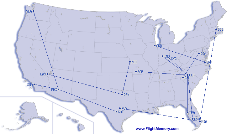 | Kortast flygsträcka: | 335 mi, 1:06 h, Charlotte (Charlotte/Douglas International) - Cincinnati (Northern Kentucky), 03-31-2026 |