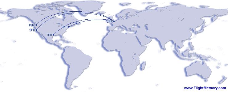| Längsta flygtid: | 10:09 h, 4,905 mi, London (Heathrow) - Portland (International), 03-15-2026 |