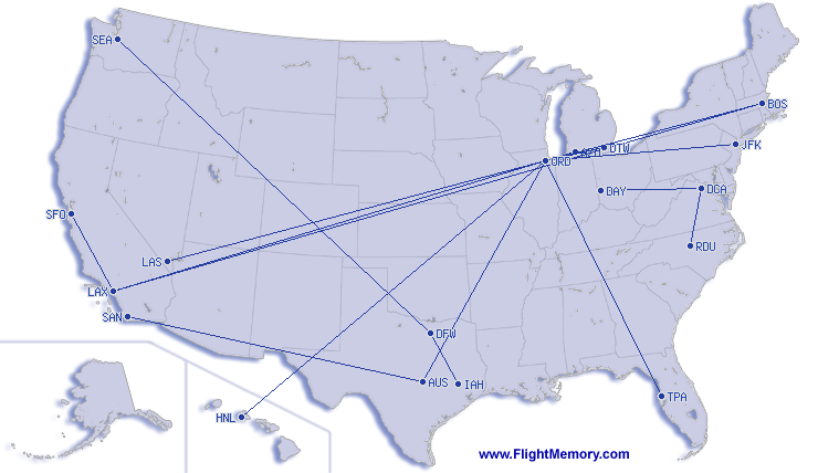 | najkrajši let: | 122 mi, 0:30 h, Kalamazoo (Battle Creek International) - Chicago (O'Hare), 02-03-2026 |